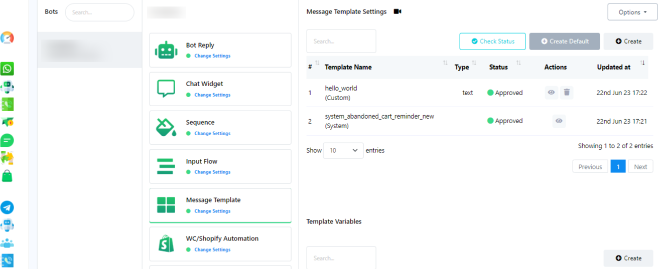 - Go to AI Chillies Dashboard and navigate to the Bot manager section.